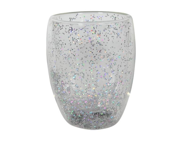 SKLENICE S DVOJÍM SKLEM S KONFETY 350 ML, STŘÍBRNÁ przeczytaj całość