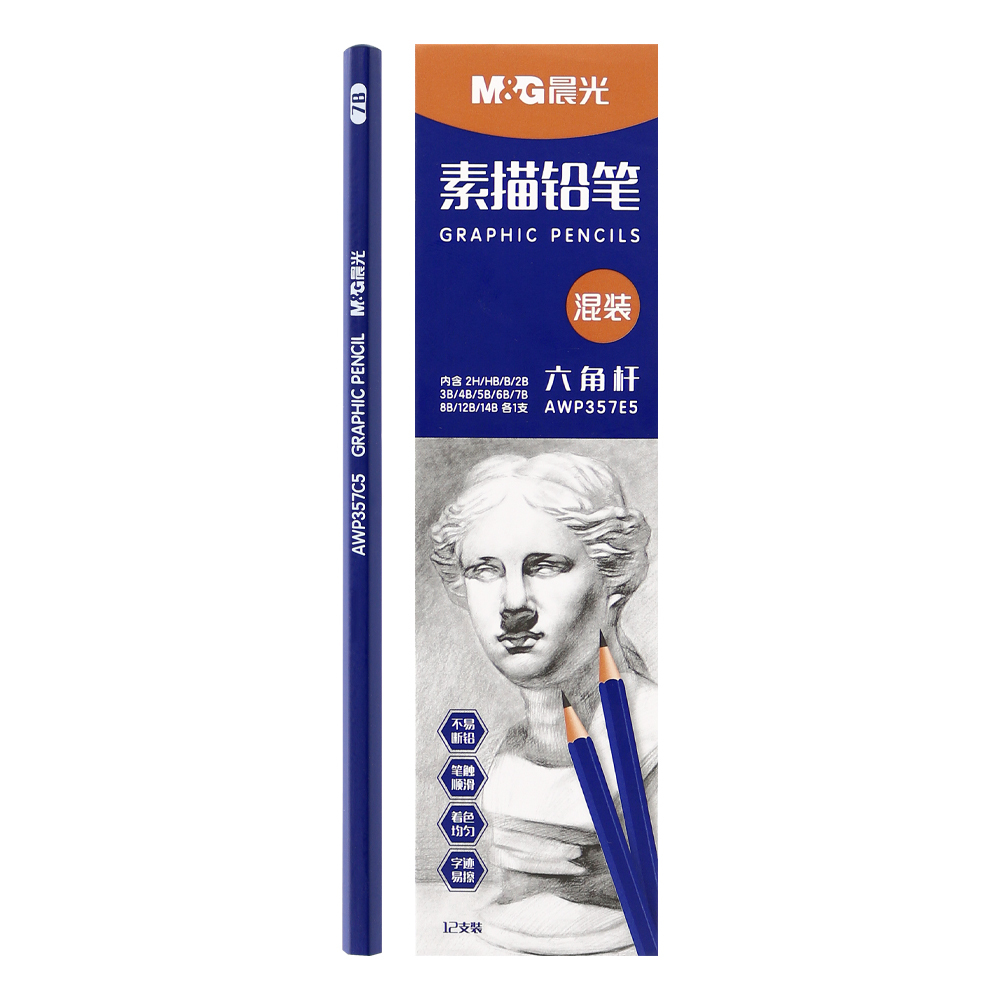 Zestaw sześciokątnych ołówków - 12 różnych twardości do gładkich rysunków.
