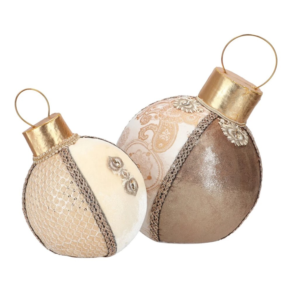 Vánoční koule ve zlaté barvě s ornamenty (sada 2 ks)