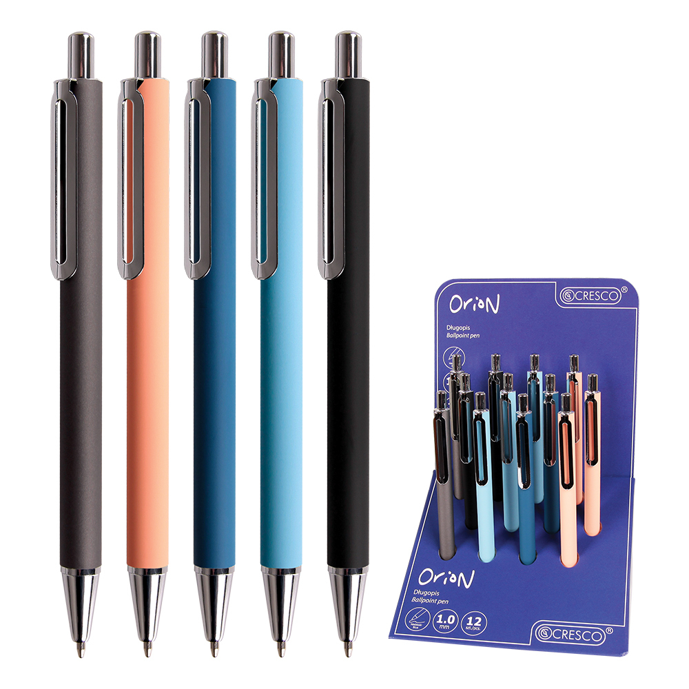 Kuličkové pero v 5 barvách.- tlačítkový výsuvný mechanismus, tělo pera o průměru 9 mm a délce 140 mm- tělo pera je z neklouzavého materiáluMateriálové složení: plast/kov przeczytaj całość