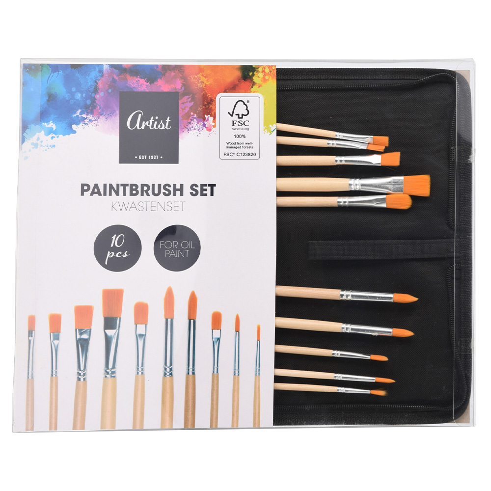 Sada štětců pro olejomalbu (10 ks) v pouzdře