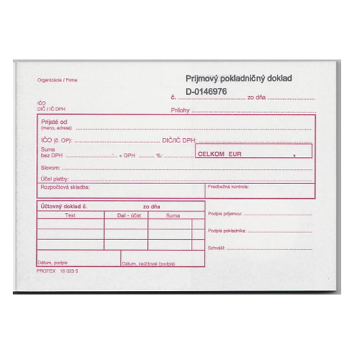 Příjmový pokladní doklad pro rozpočtové organizace, číslovaný se 2 stvrzenkami,