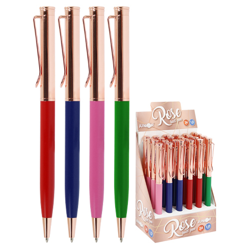 Elegantní kuličkové pero Rose, kovová část pera imituje růžové zlato (4 barvy těla).průměr kuličky (hrot) 1,0 mmmodrý inkoustvelkoobjemová jednorázová náplňotáčecí mechanismuskulaté, hladké tělobarvy: růžová, tmavě modrá, červená a zelenámateriál: kov, plastbarevnou variantu vyberte v poli nad... przeczytaj całość