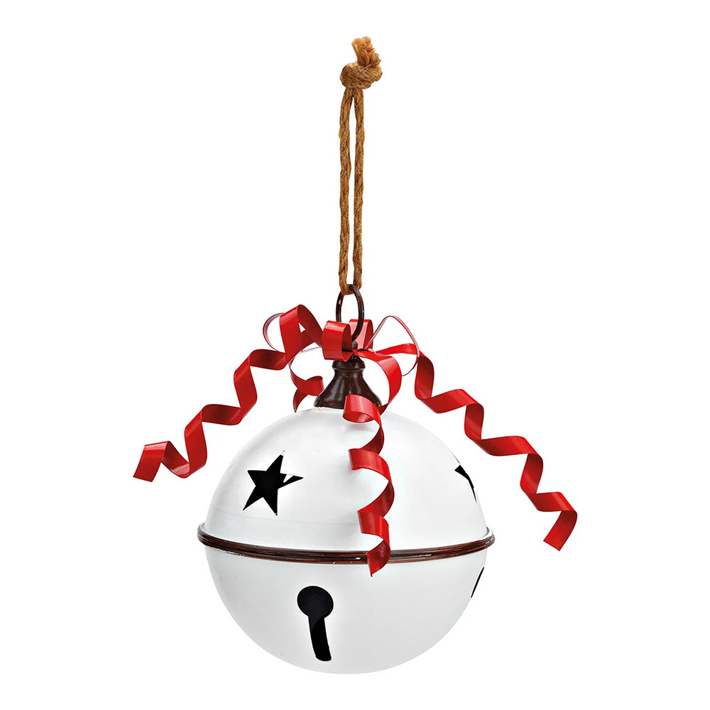 Závěsná dekorace - kovová rolnička, bílá 16x22x16 cm