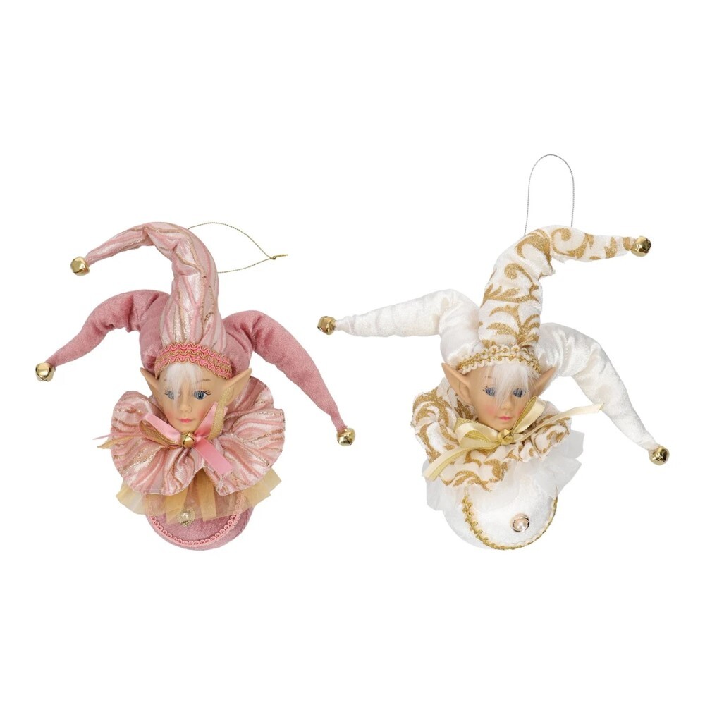 Vánoční dekorace na zavěšení - skřítek (holčička) v krásném růžovém nebo bílo-zlatém kostýmu s rolničkama.materiál: polyester, plastvariantu vyberte v poli nad cenovkouCena je za 1 ks. przeczytaj całość