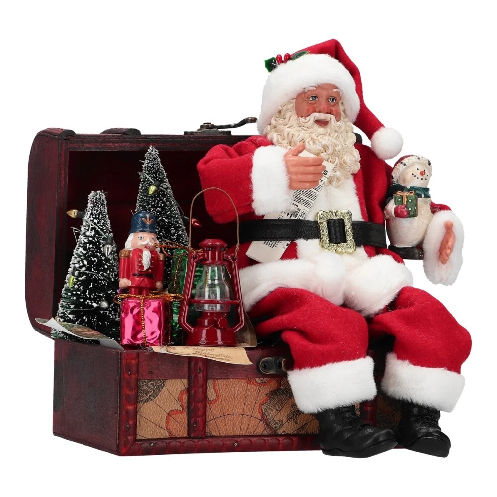 Vánoční dekorace Santu sedícího na kufru s dárky a figurkami.materiál: překližka, plast, polyester przeczytaj całość