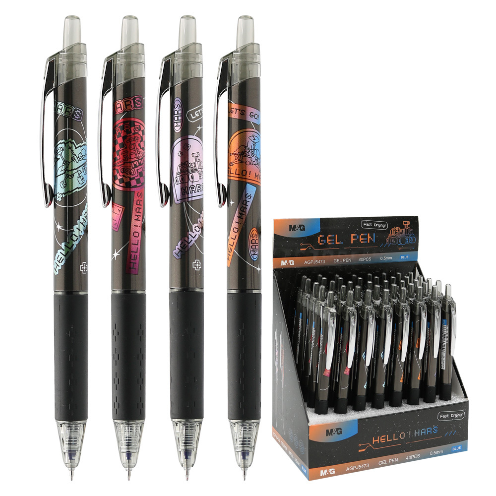 Gelové pero s motivem Hello ! Mars (2 designy v balení).jemná stopa (hrot) 0,5 mmmodrý inkouststiskací mechanismusgumový úchop pro pohodlné držení pera při psanínáhradní náplň 0567BBalení obsahuje 40 ks.Cena je za 1 kus. przeczytaj całość