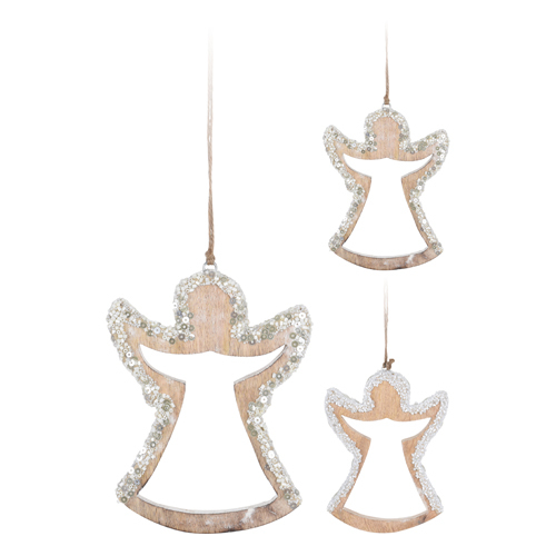 Vánoční ozdoba dřevěná 15 cm - anděl zdobený korálky