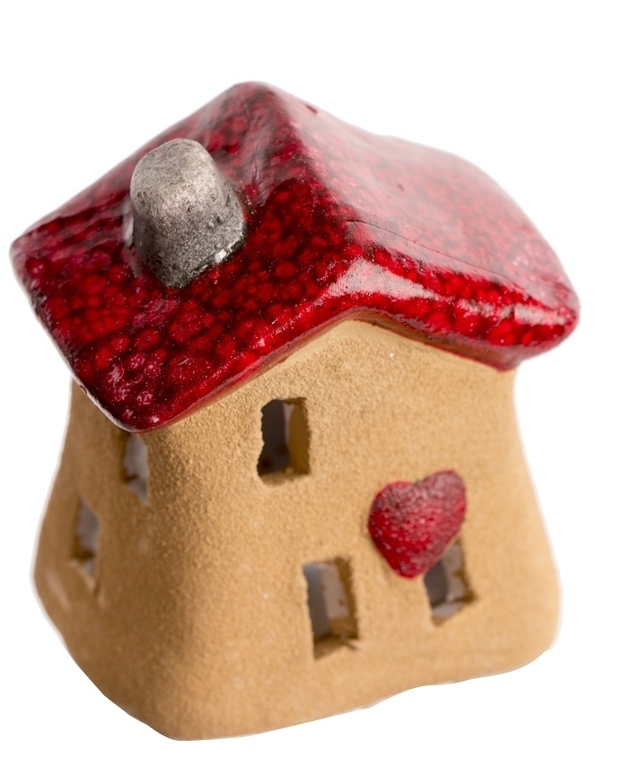 Keramický domek na čajovou svíčku 7,5 cm červený