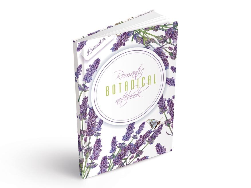 - Motyw na okładce: lawenda z napisem „Romantic Botanical notebook”