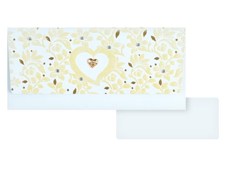 Koperta na pieniądze jako prezent dla nowożeńców. Spraw nowożeńcom radość i podaruj im kopertę z pieniędzmi lub bonem podarunkowym. W środku znajduje się karteczka bez tekstu, na którą możesz napisać dedykację.