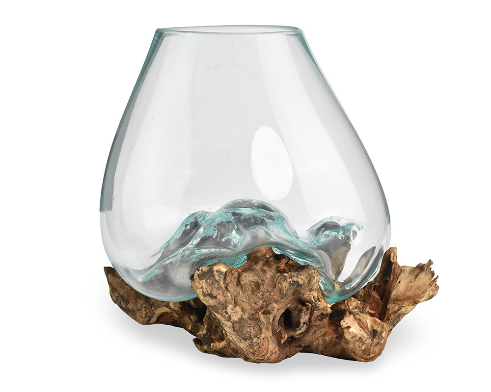 Tato skleněná nádoba spojuje tavené sklo a přírodní dřevo v praktický a estetický doplněk do interiéru. Sklo je ručně tvarované tak, aby přesně zapadlo na dřevěný podklad, což vytváří příjemný kontrast mezi chladným sklem a teplým dřevem. Každý kus je originální díky přirozené struktuře dřeva a...