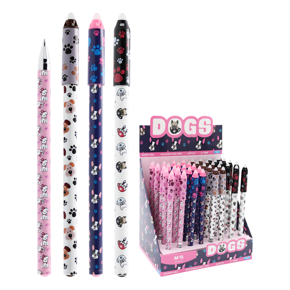Ścieralny roller marki M&G z motywem piesków w czterech wariantach kolorystycznych.