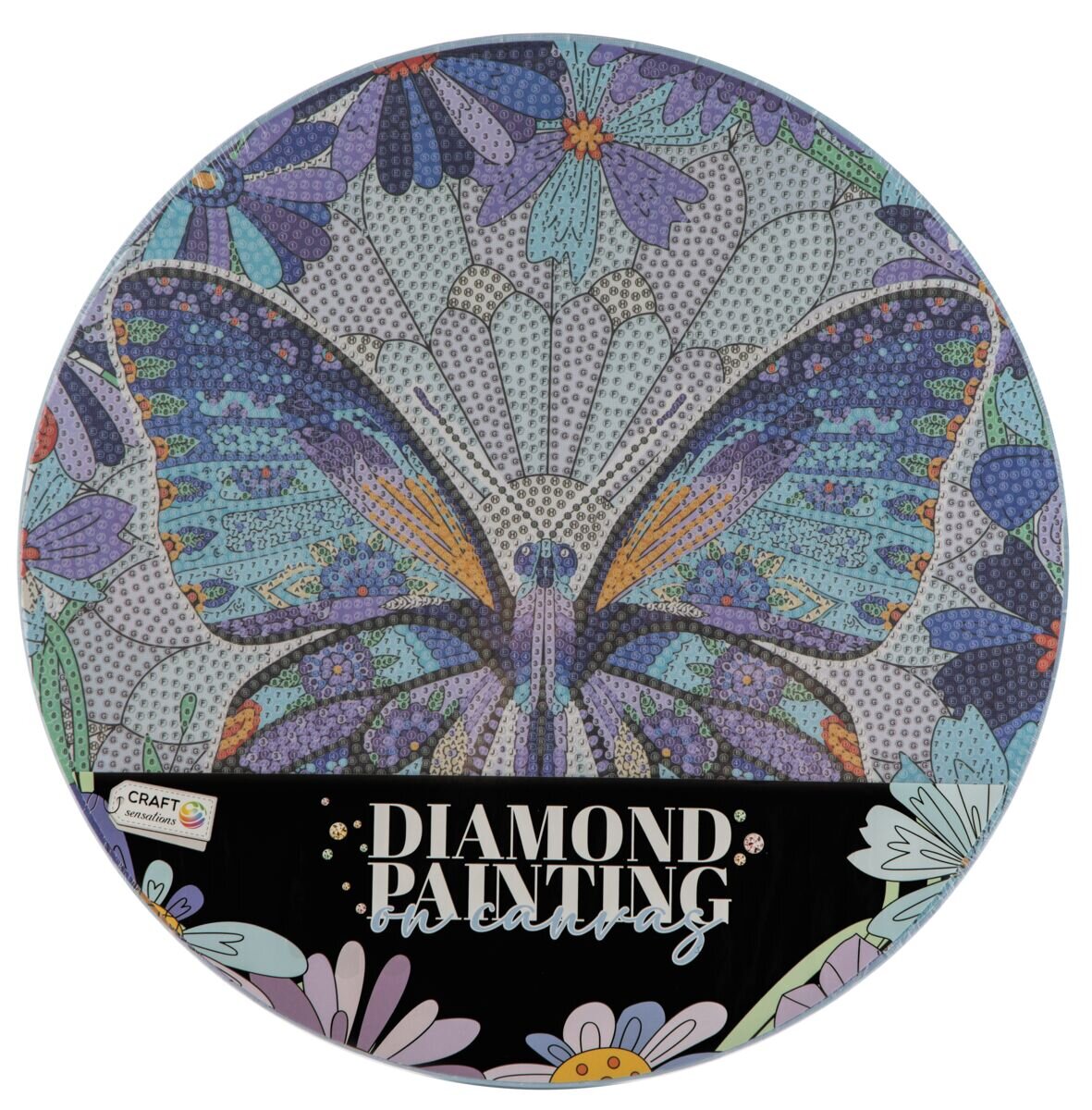 Diamantový obrázek na plátně, kulatý 30 cm - mandala, motýl