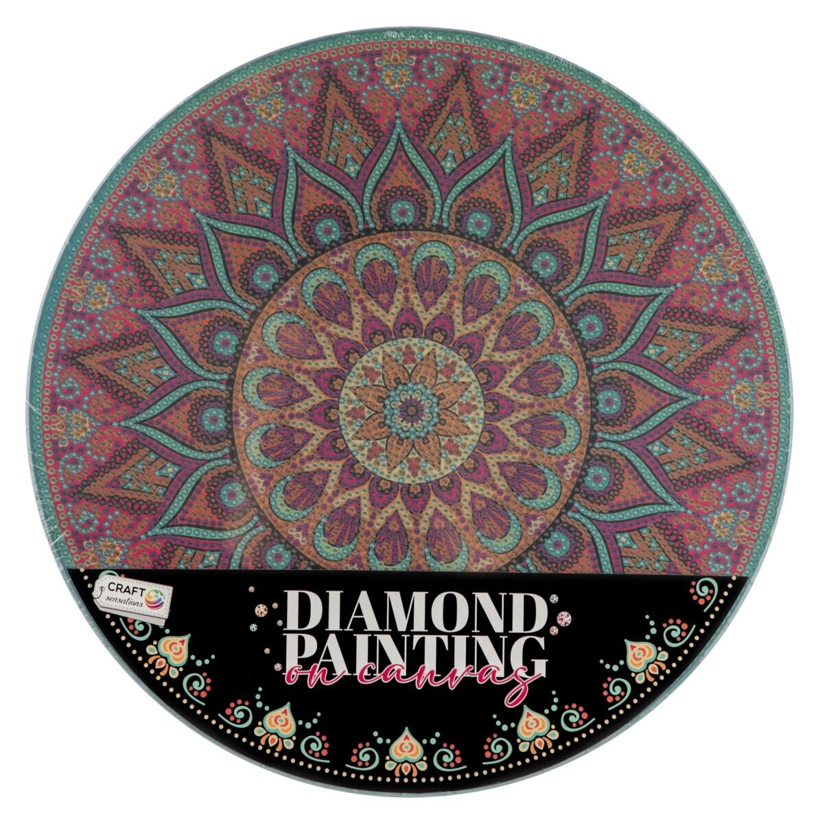 Diamantový obrázek na plátně, kulatý 30 cm - mandala, zelená květina