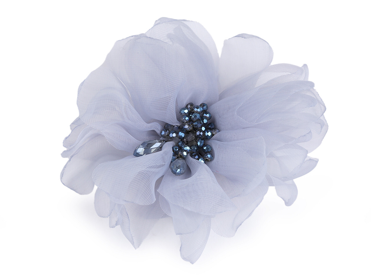Brož květ s broušenými korálky Ø10 cm v krabičce - 1 ks - 4 šedá
