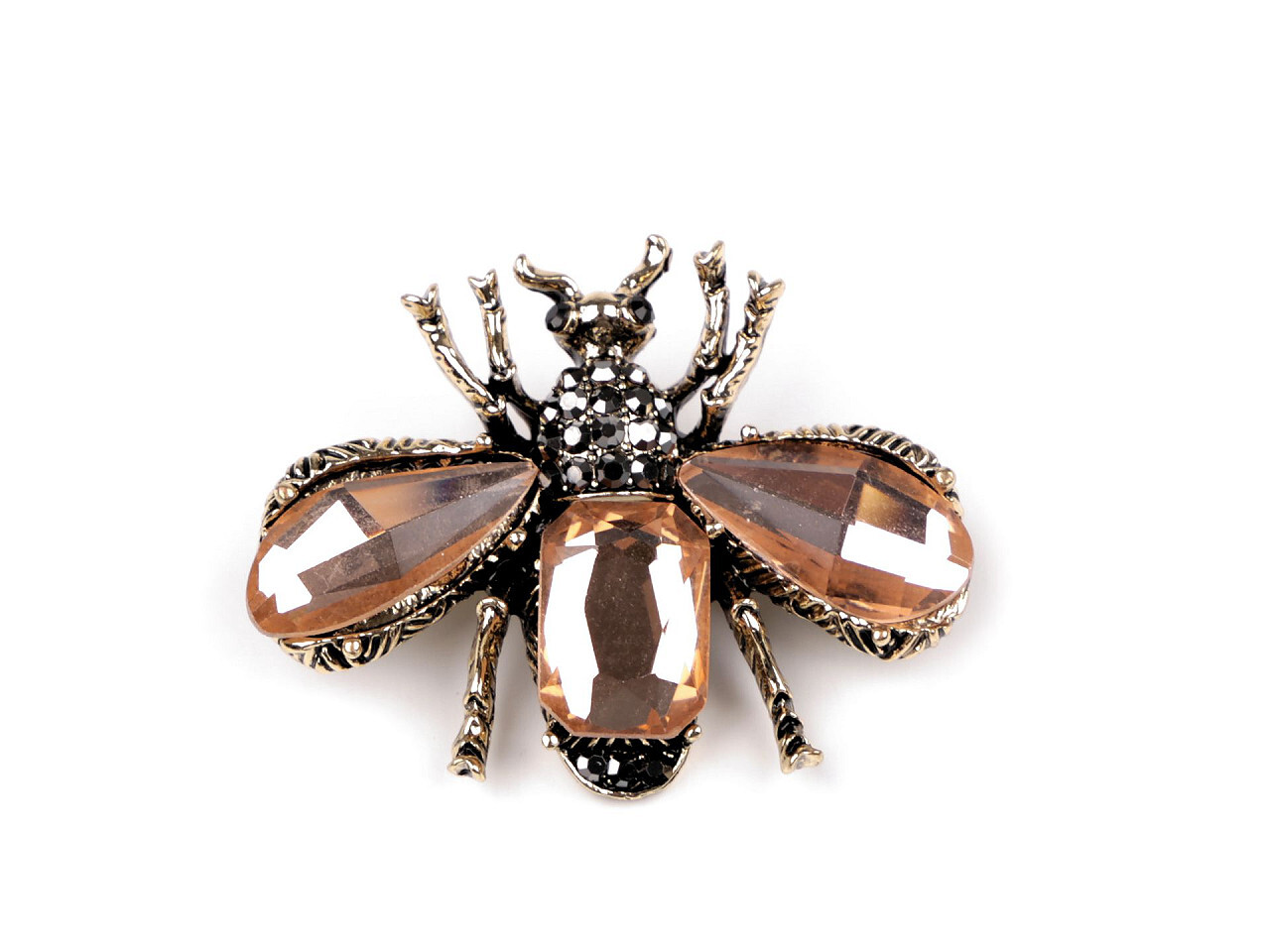 Brož s broušenými kamínky včela - 1 ks - 1 pudrová