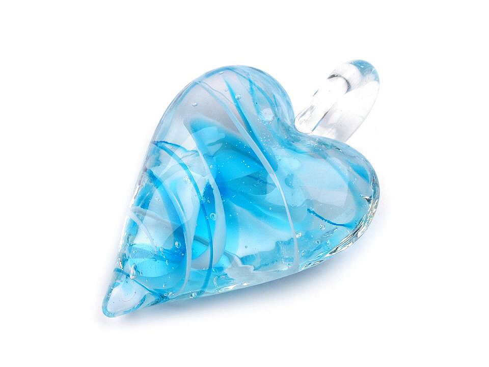 Skleněný přívěsek srdce 30x45 mm - 1 ks - 7 modrá azuro