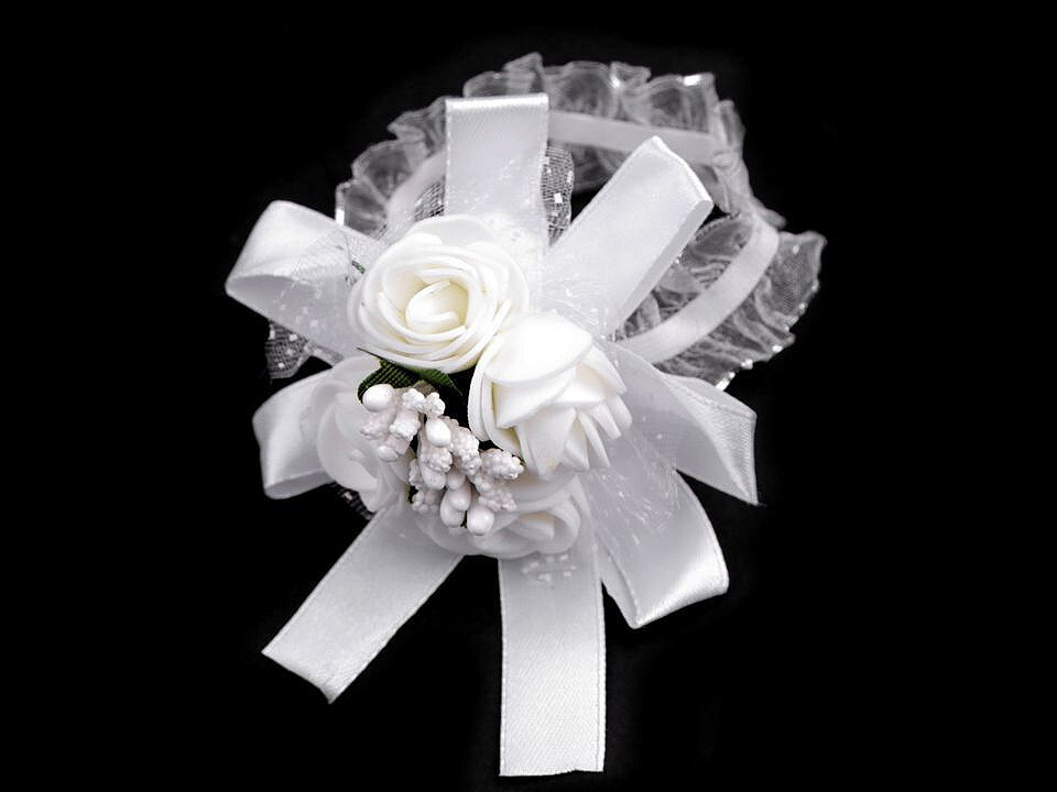 Zápěstní náramek s růžičkami je určený především pro svědkyni, družičky, maminku nebo jen tak. Potěší všechny ženy, které se rády zdobí romantickými doplňky. Je z pružné krajky s lurexovými okraji, dokonale se ruce přizpůsobí. Ve středu jsou růžičky s drobnými pestíky, dozdobené organzou a...