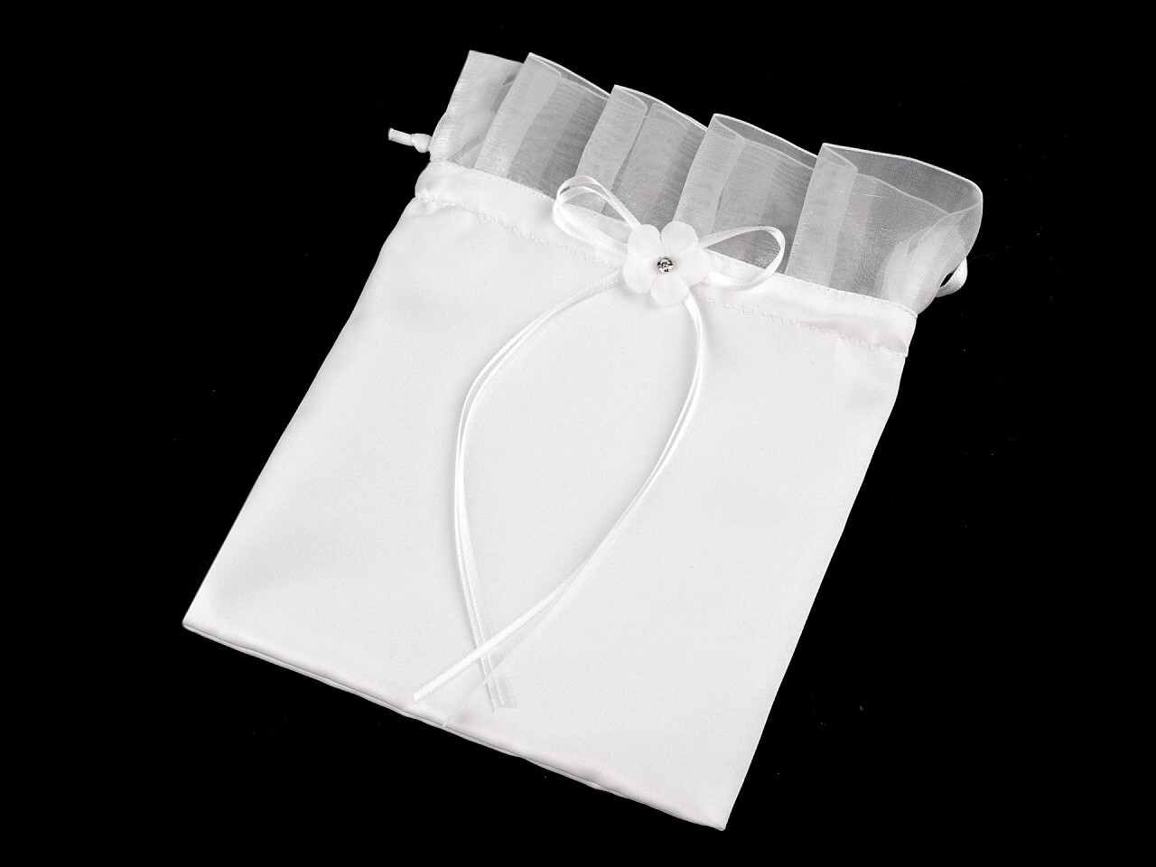 Saténová kabelka pompadour pro družičky - 1 ks - 2 bílá květ