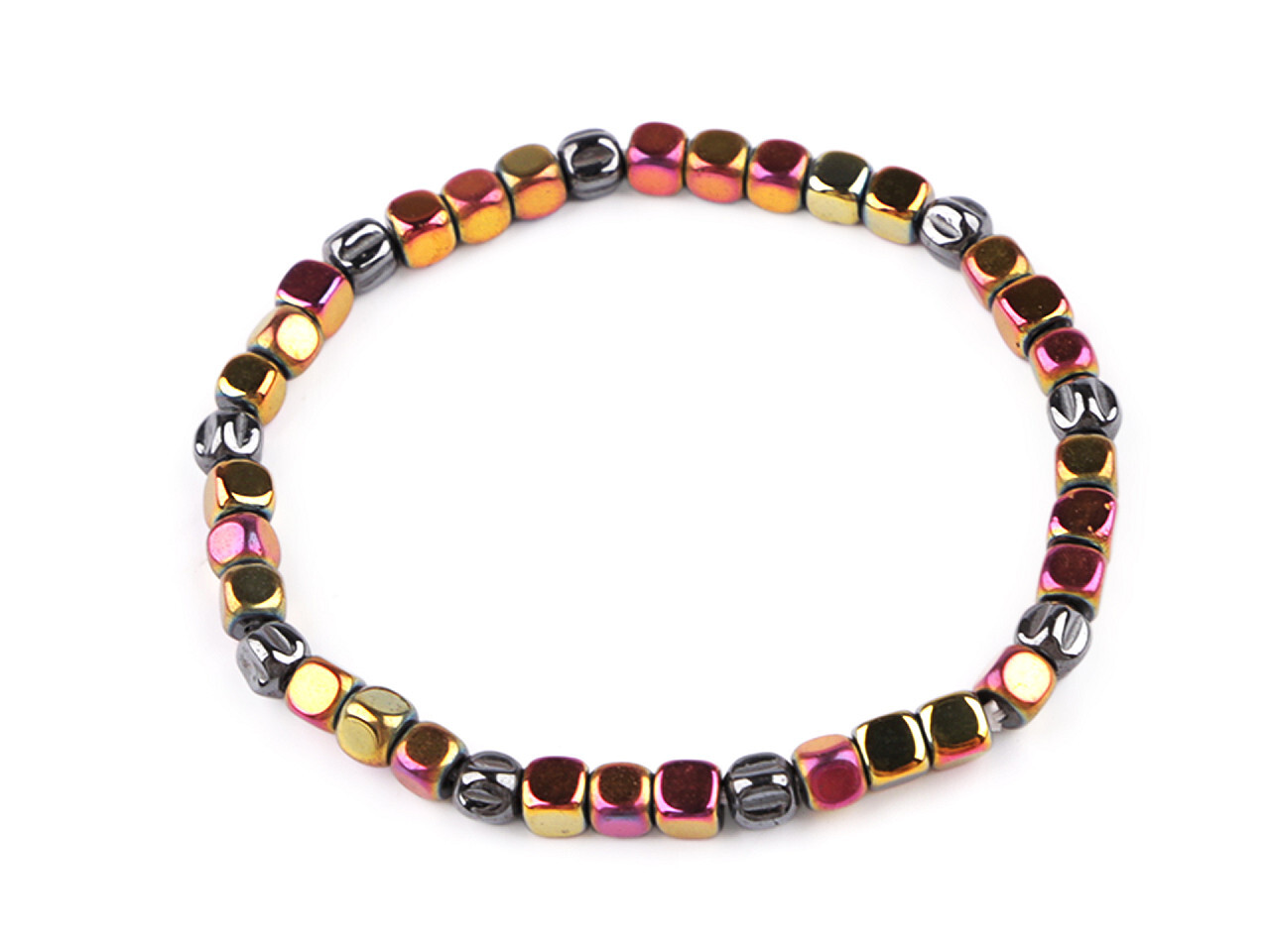 Elegantní náramek je vyrobený ze zajímavých korálků pokoveného hematitu. Díky pružence se náramek snadno natáhne na ruku, má univerzální velikost. Hematitový náramek patří mezi šperky, které díky své fascinující povrchové úpravě zaujmou na první pohled. Náramek potěší každou ženu, je dárkem, se kterým nešlápnete vedle. Hodí se ke slavnostním příležitostem, skvěle podtrhne i business styl oblékání.