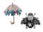 Brož s broušenými kamínky deštník, včela - 1 ks - 1 červenozlatá deštník