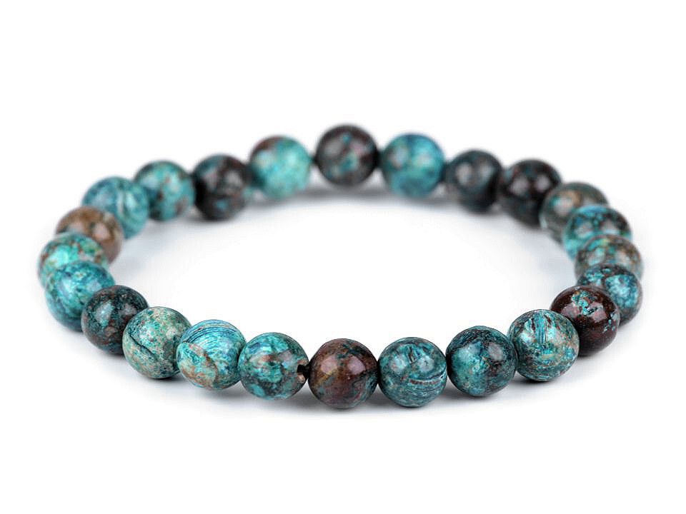 Bransoletka z koralików chryzokoli jest wyjątkowym dodatkiem zapewniającym spokój i harmonię. Nadaje się do codziennego noszenia. Dzięki gumce ma uniwersalny rozmiar, łatwo się rozciąga na rękę.