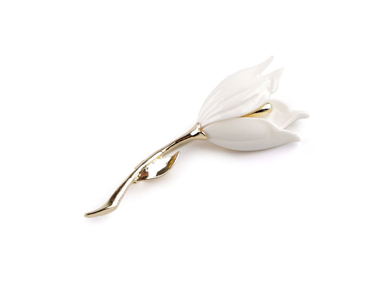 Metalowa broszka w kształcie kwiatu z kolorową emalią zachwyci Cię swoimi romantycznymi kształtami. Jest bardzo elegancka, możesz ją nosić na co dzień i na uroczyste okazje - wyjścia do teatru, przyjęcia itp. Z tyłu broszka ma zamykane zapięcie na szpilkę. Możesz ją nosić nie tylko na odzieży, nadaje się także do ozdobienia kapeluszy, torebek czy przypięcia chusty.