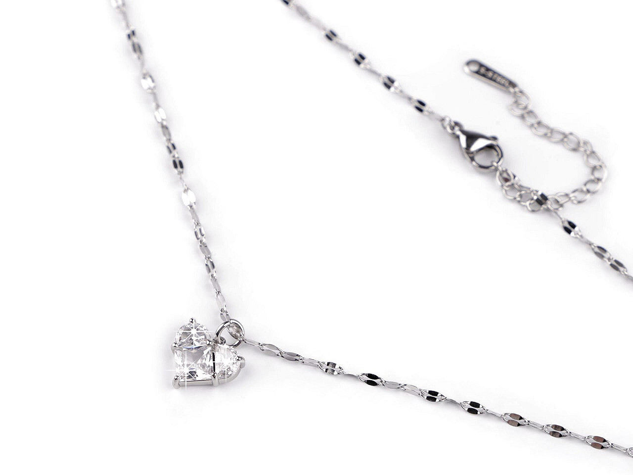 Náhrdelník z nerezové oceli s broušenými kamínky srdce - 1 ks - crystal
