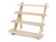 Czteropiętrowy stojak drewniany nadaje się do prezentacji produktów w witrynach. Schodkowe ułożenie oszczędza miejsce w przestrzeni. Stojak można łatwo złożyć i rozłożyć za pomocą dwóch śrub i nakrętek skrzydełkowych. Dzięki temu jest chętnie wykorzystywany także przez sprzedawców na stoiskach. Wymiary pojedynczego poziomu to 8 x 39,5 cm. Poziomy na złożonym stojaku się nie zachodzą, można na nich umieścić przedmioty o dowolnej wysokości. Z jednej strony w desce wyryte są 3 rowki na włożenie tabliczki z opisem. Możesz sam zdecydować, czy chcesz mieć na górnej stronie gładkie drewno, czy skorzystasz ze strony z rowkami. Stojak dostarczamy w stanie rozłożonym.