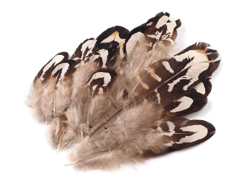 Bažantí peří délka 4-10 cm - 10 ks - šedobéžová