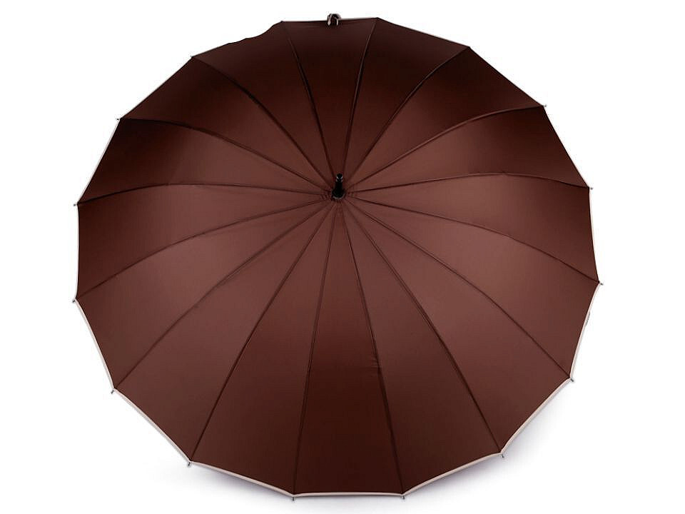 Okraje má olemované decentním barevným proužkem. Má klasickou tyč zakončenou pevnou rukojetí. Skládá se z 16 výsečí, díky kterým se deštník řadí mezi špičkové kousky. V kombinaci s pružnými lamelami a také díky velké hloubce má deštník vysokou pevnost a stabilitu.