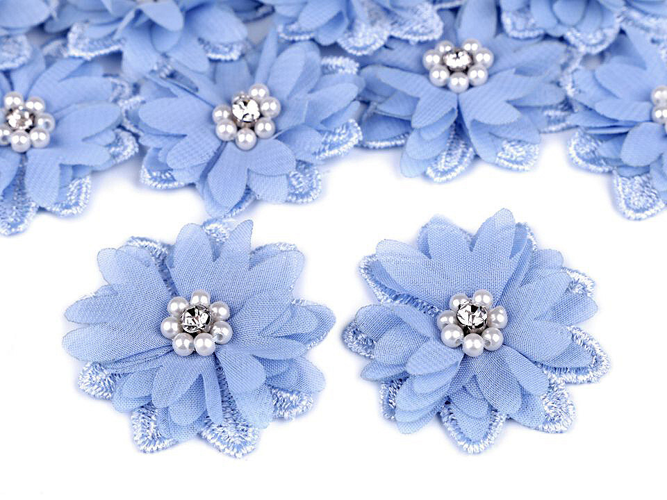 Květ s korálky Ø5 cm - 10 ks - 5 modrá světlá