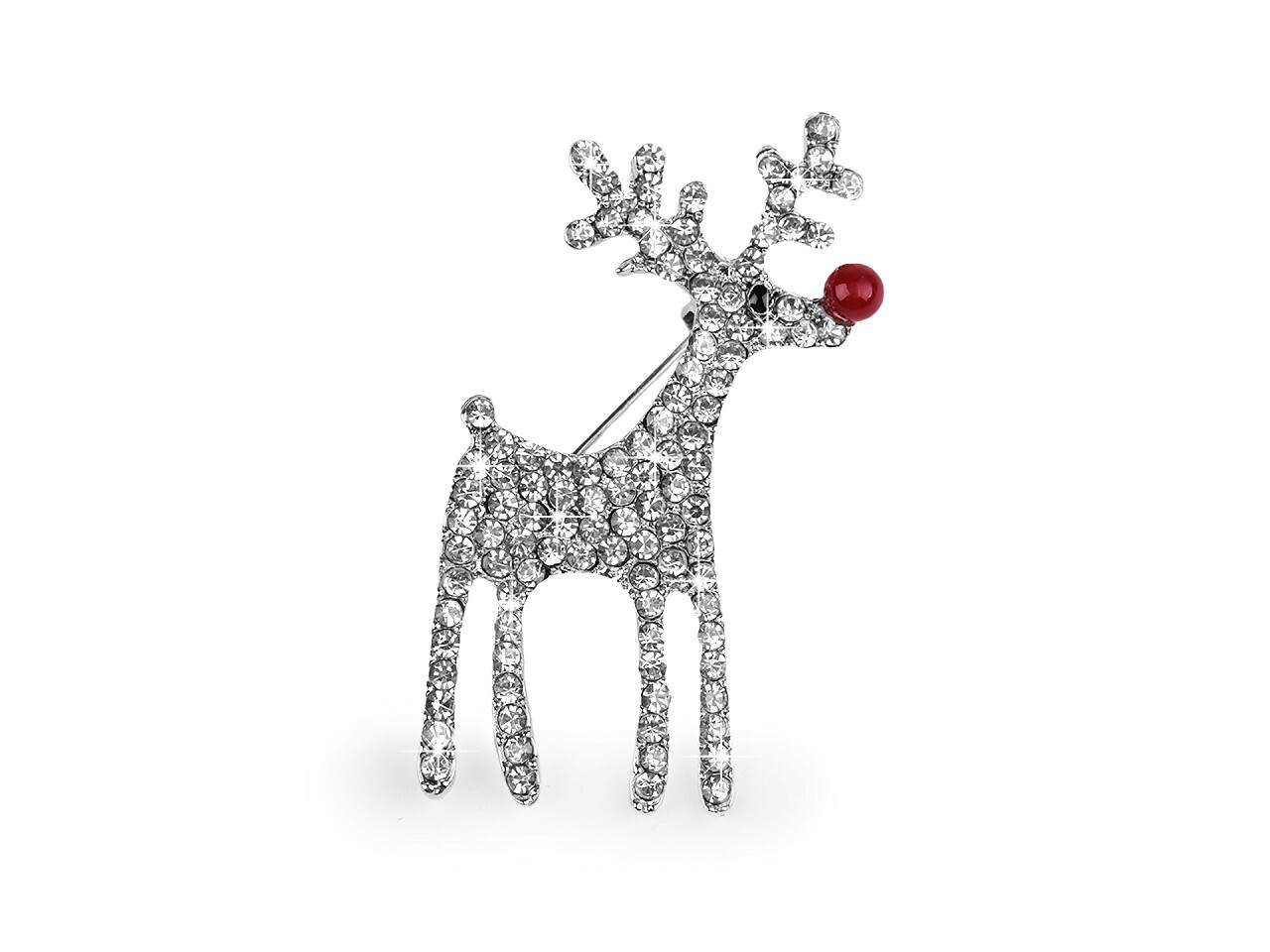 Brož s broušenými kamínky sob - 1 ks - 1 stříbrná červená