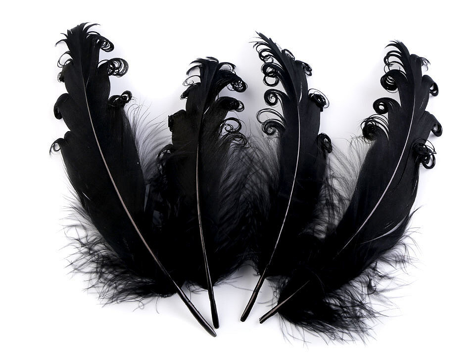 Husí peří kudrnaté délka 12-18 cm - 20 ks - 7 černá