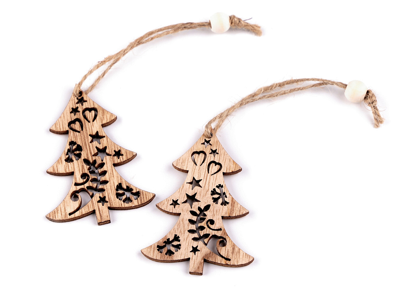 Vánoční dřevěná hvězda, stromeček - 20 ks - 1 hnědá přírodní strom