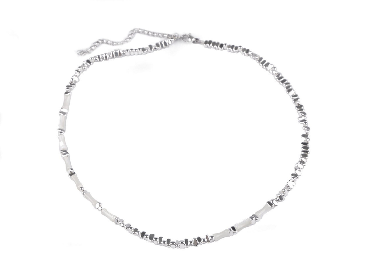 Náhrdelník z nerezové oceli s korálky s efektem kočičích očí - 1 ks - stříbrná