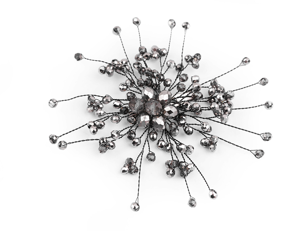 Brož se skleněnými broušenými korálky Hand made - 1 ks - 4 black diamond černá