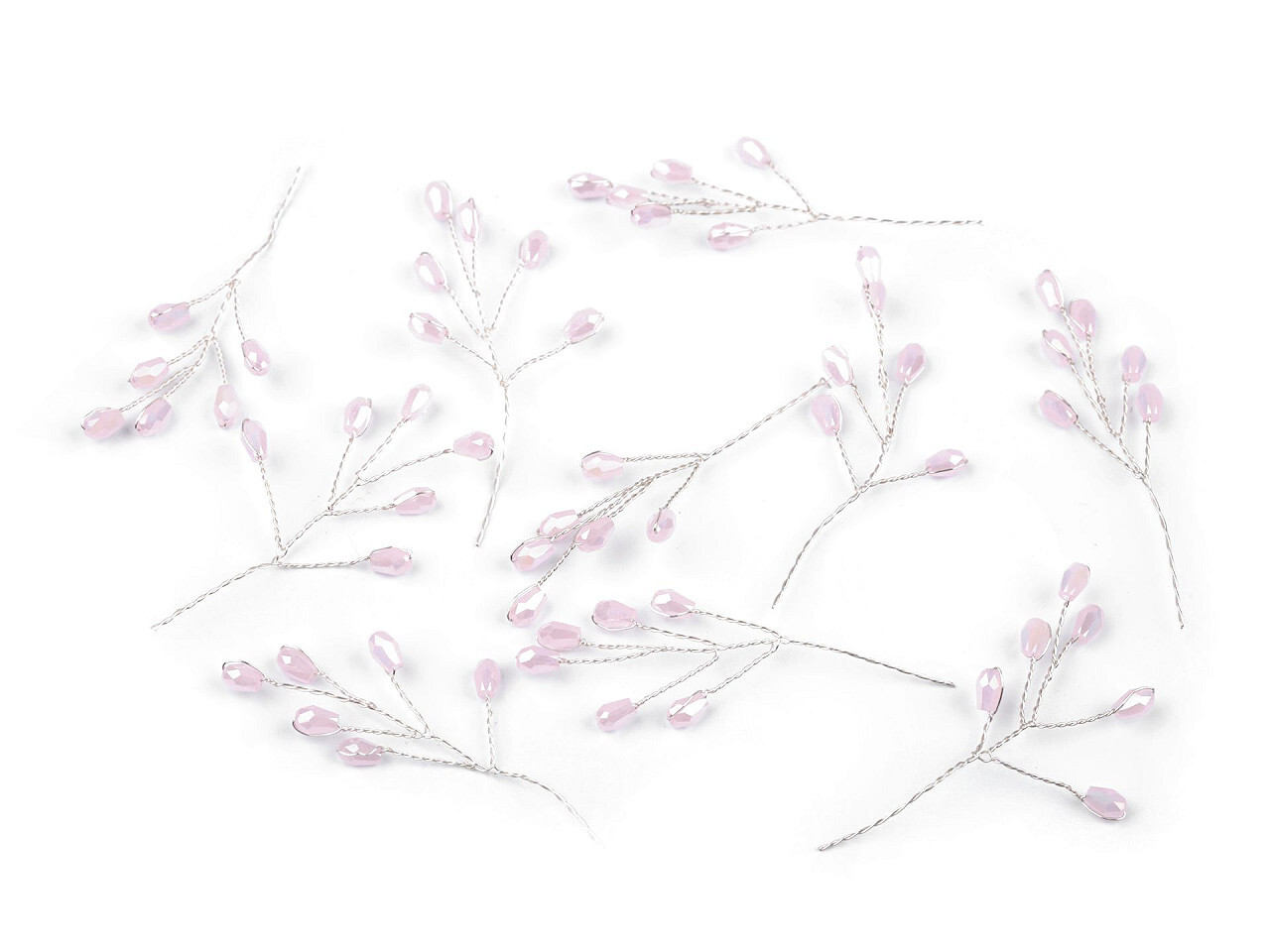 Větvička drátěná s broušenými korálky hand made - 10 ks - 2 rose light stříbrná
