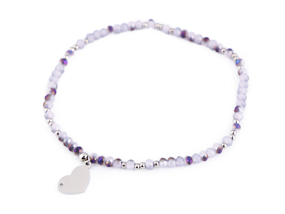 Náramek s broušenými korálky z nerezové oceli - srdce - 1 ks - 2 fialová nejsvětlejší
