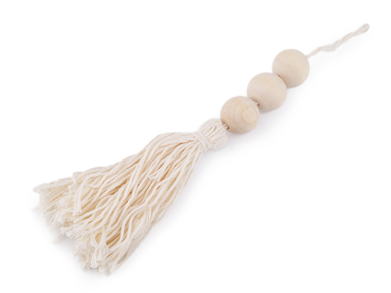 Střapec bavlněný s korálky délka 20 cm - 5 ks - režná světlá