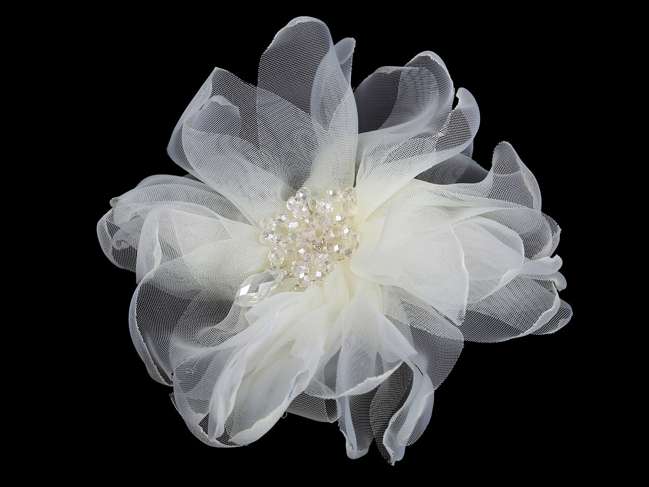 Brož květ s broušenými korálky Ø10 cm v krabičce - 1 ks - 2 krémová nejsvět.