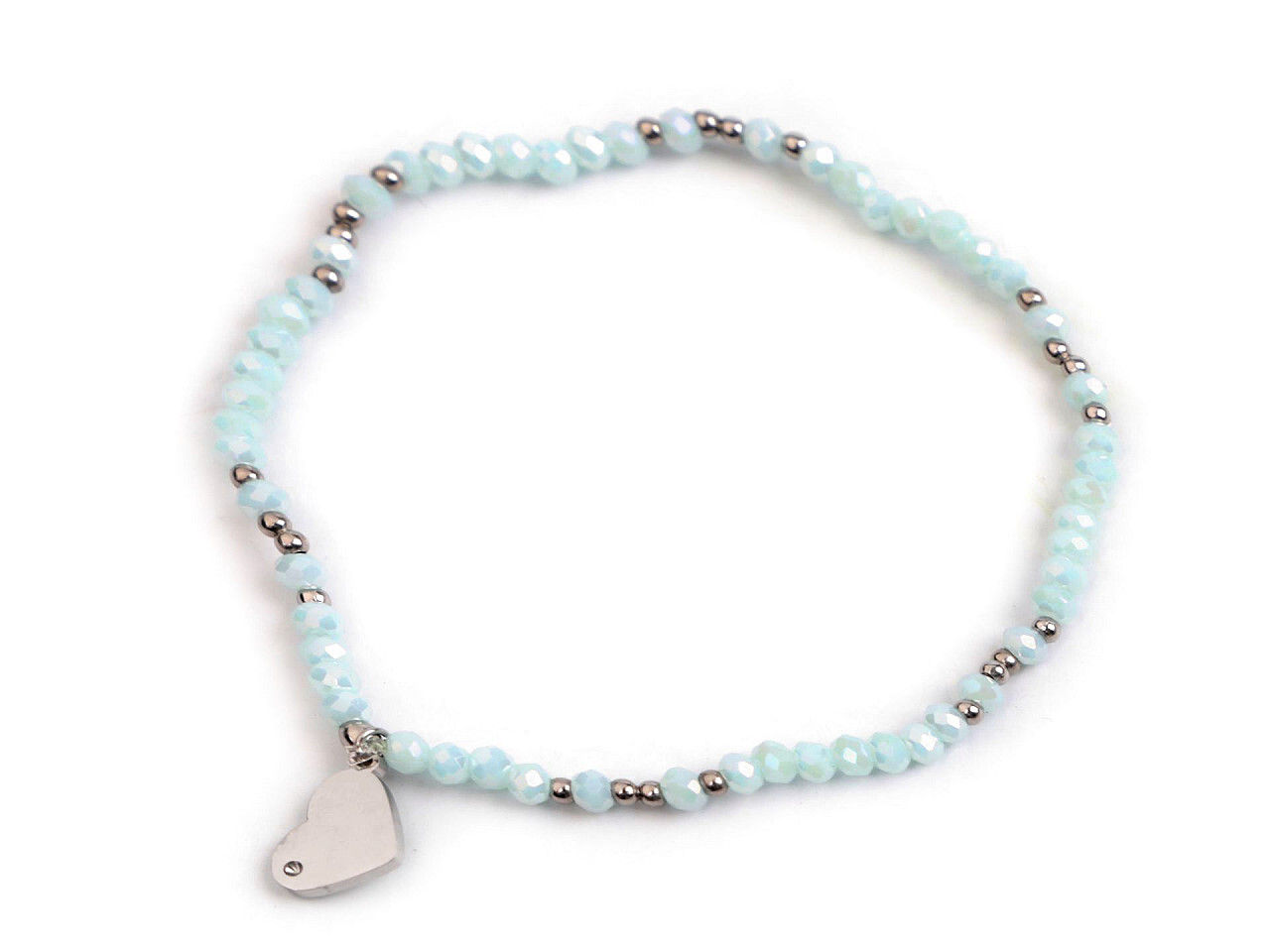 Náramek s broušenými korálky z nerezové oceli - srdce - 1 ks - 6 mentolová
