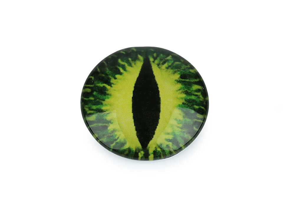 Okrągłe szklane oczy z motywem smoczego oka charakteryzują się solidnym wykonaniem. Dzięki wypukłemu kształtowi soczewki obraz oka pięknie się wyróżnia. Wykorzystasz je do tworzenia różnych postaci i zwierzątek. Do ich przyklejenia zaleca się użycie kleju do przyklejania kamyków. Często stosuje się je także do wyrobu biżuterii - jako kaboszony nadają się do przyklejenia w metalowe oprawy lub do obszycia koralikami i rokajlem. Bardzo efektownie prezentują się w biżuterii drutowanej.