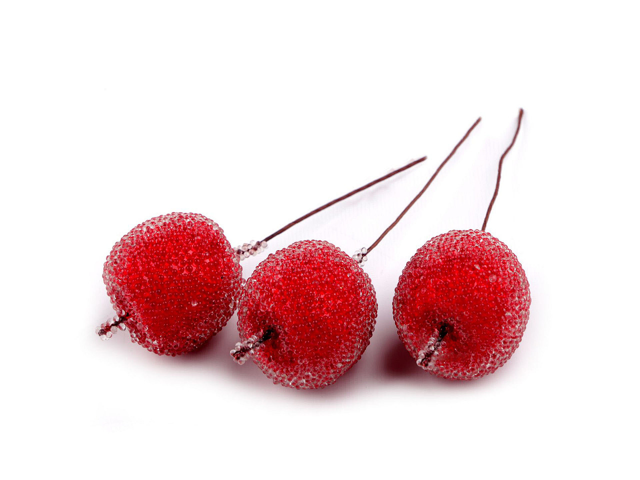 Umělá jablíčka v ledu, na drátku - 10 ks - červená