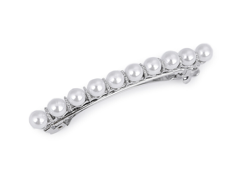 Francouzská spona do vlasů s perlami - 12 ks - 1 perlová