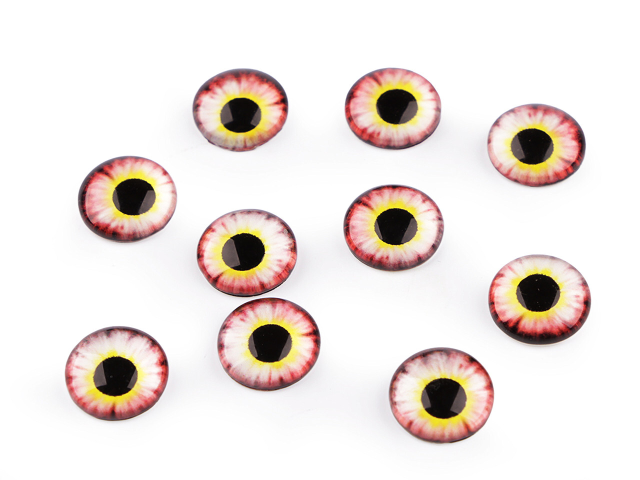 Skleněné kulaté oči mají velice realistické zpracování panenky. Díky tvaru vypouklé čočky obrázek oka krásně vynikne. Využijete je na tvorbu různých postaviček a zvířátek. Pro jejich přilepení je vhodné použít lepidlo na lepení kamínků. S oblibou se používají i na výrobu bižuterie, jako kabošony...