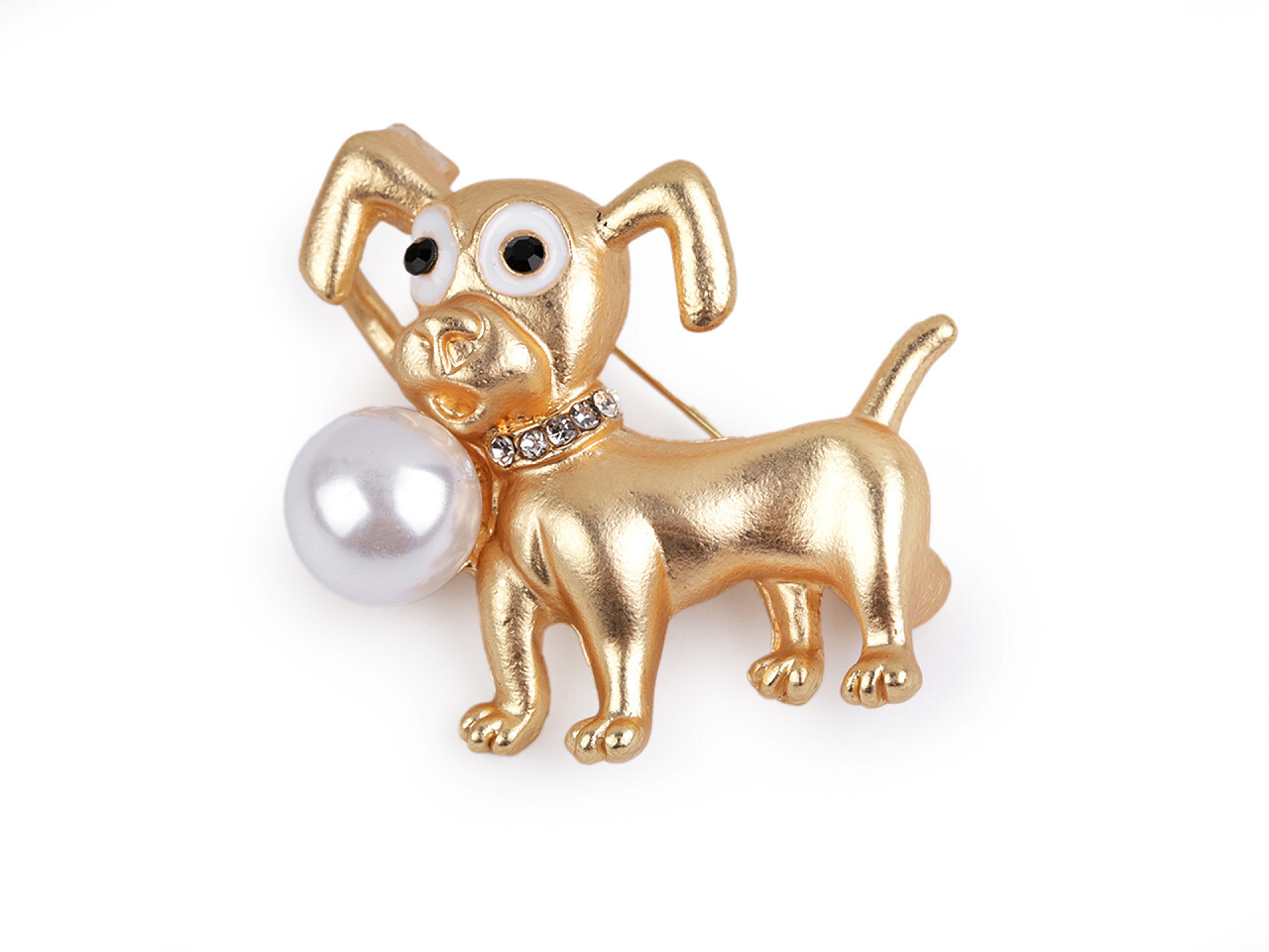 Brož s broušenými kamínky pes - 1 ks - 2 zlatá sv.