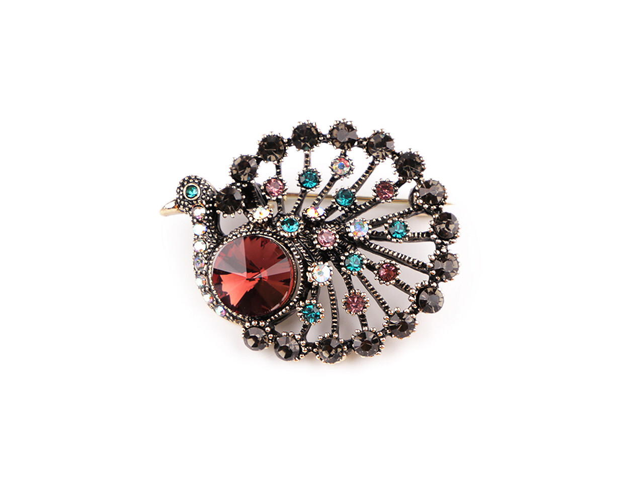 Brož s broušenými kamínky páv - 1 ks - amarant