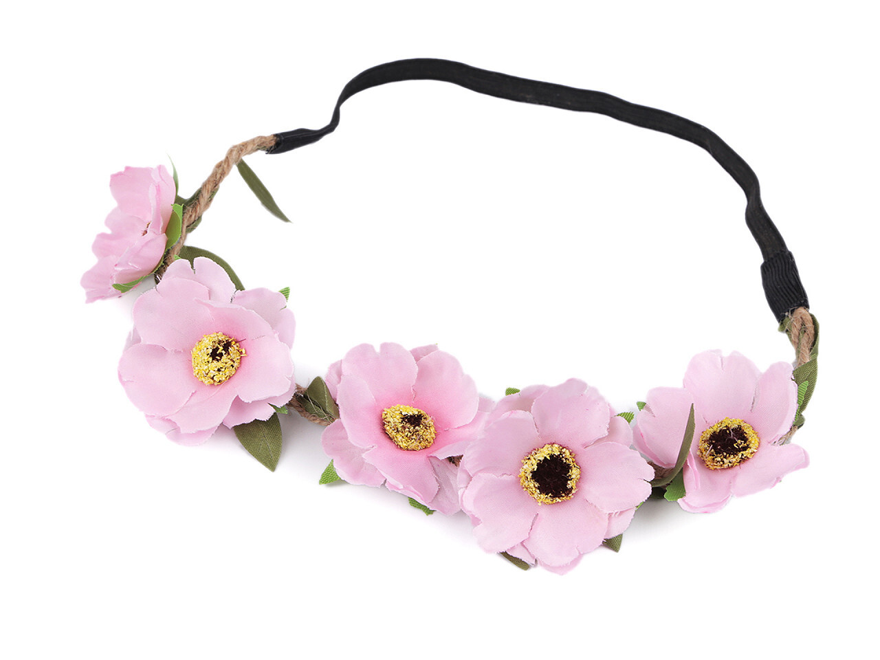 S bohémskou čelenkou s romantickými květy se budete cítit úžasně. Vypadá skvěle v rozpuštěných i zapletených vlasech. Květy jsou propracované, s ozdobenými středy. Jsou připevněné k copánku z voskovaných šňůrek. Do copánku je vpletený prýmek s lístečky. Zadní část tvoří pružná guma. Díky ní čelenka pevně drží a nepadá, je velice příjemná na nošení.